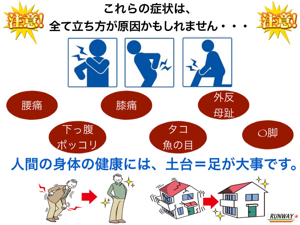 土台がくずれると、家全体に影響を及ぼすのと同じで、体の不調や故障、寿命にも関係してきます。